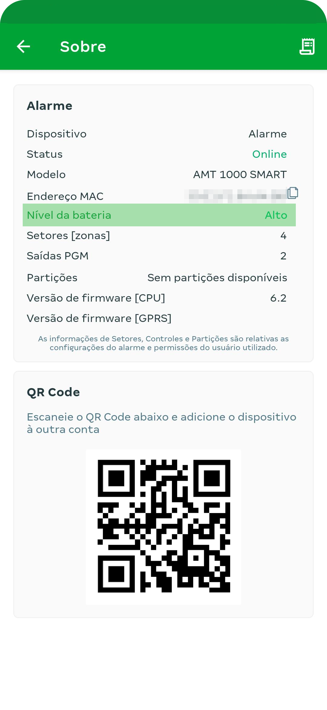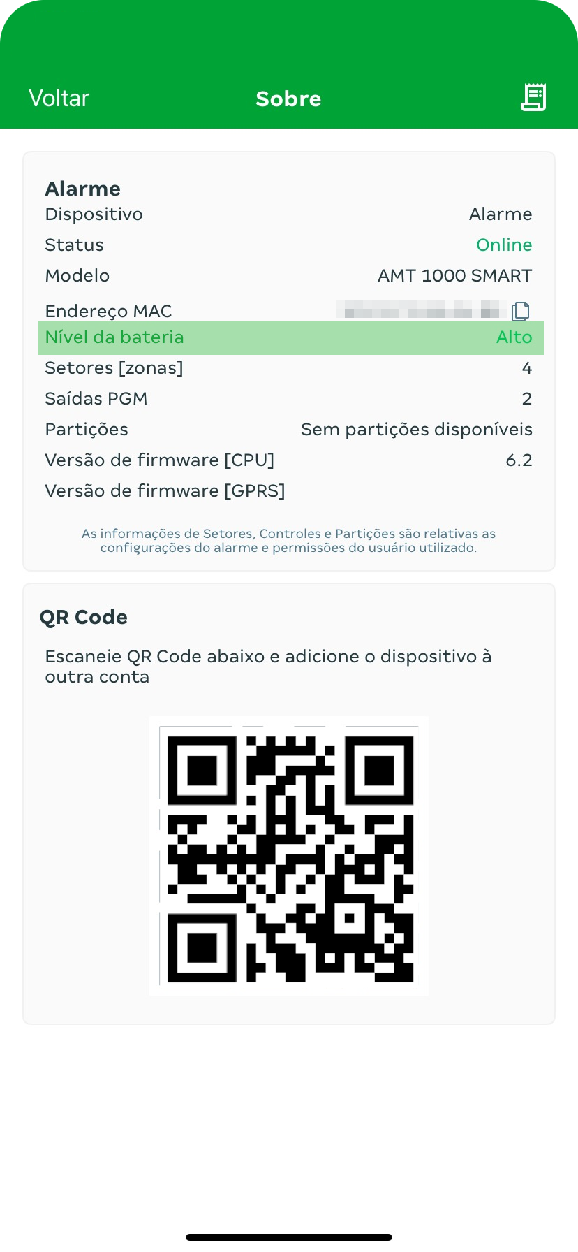 » Alarma con método de conexión vía Receptor IP no informar la MAC y no mostrar el código QR en la pantalla de Información.